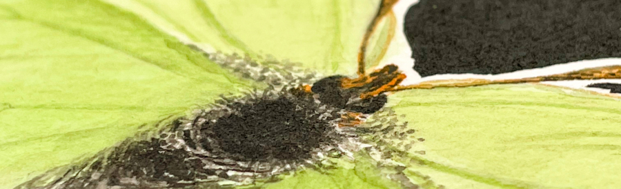 Durante o verán e outono de 2022, a artista Lúa Fraga observou nalgúns paseos en familia, bolboretas e mesmo algunha oruga, que nunca antes vira. Ou quizais si, sen ser consciente. Iso levouna a investigar sobre elas acudindo á biblioteca ambiental do CEIDA, no pazo de Lóngora, e a consultar algúns libros sobre a vida das bolboretas. Alí descubriron que unha grande e colorida oruga que vira neses paseos, transformaríase nunha bolboreta macaón. De non atopar aquela oruga preto de casa, en Oleiros, pensarían que esa impresionante bolboreta pertencía a outros hábitats, pero é que máis preto do que pensamos habitan especies incribles que seguramente pasan desapercibidas. A intención de pintar estas bolboretas e expoñelas, é crear máis consciencia dos belos detalles que nos rodean e observar cun pouco de atención nos nosos paseos pola natureza. Todas as ilustracións expostas son obras orixinais, feitas sobre papel 100% algodón de 310g. Con acuarela e un fondo de tinta chinesa negra que resalta a morfoloxía das bolboretas e contrasta coas cores das súas ás.